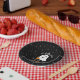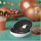 Ein kleiner Boo ist fast zu Ghost Halloween Baby Dusche Papierschalen - ein kleines Boo ist fast fällig, schwarzer Hintergrund mit Sternen Design mit niedlichem Geist halten ein Herz und ein kleiner Kürbis an seiner Seite.