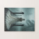 Dieses Bild ist unheimlich und gespenstisch, eine geistreiche Braut steht allein auf einem Dock am See. (A.I. generiert)