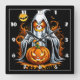 Ghost preppt Kürbis zu Halloween! Quadratische Wanduhr