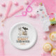 Ghost Pumpkin Bat Name Spooky Halloween Bash. Ein lustiges Design für Ihren verwöhnten Party-Tisch. Der Text kann leicht personalisiert werden, einschließlich des Namens der Hosts. Mit Gespenst, Fledermaus und Kürbismotiv.