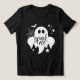 Spaß 'Spook Me' Halloween Shirt mit Geist, Spinnweben, Spinne, Fledermaus und Sternen. Weißes Design mit leicht strukturiertem Grunge Overlay Effekt. Das perfekte Outfit für Halloween-Partys, Trick oder Behandlungen und unvergessliche Fotos.