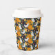 Ein spielerisches Halloween-Muster, gefüllt mit freundlichen Gespenstern, Kürbissen und blühenden Weinreben. Eine lustige Mischung aus leckerem und botanischem Stil in einem Vintagen Stil.