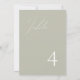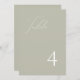 Diese Hochzeitsfeier bietet einen schlauen grünen Hintergrund und einen eleganten Script-Schriftart. Diese Tischnummer-Karte eignet sich hervorragend für Ihre Hochzeitsfeier zum Thema Gartenbau. Pair mit allem in der GIANNA Kollektion für ein einheitliches Aussehen.