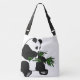 Der einsame Riesenbär isst einen großen Haufen Bambus