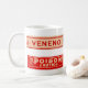 Warnen Sie Leute weg von Ihrem Kaffee mit dieser lustigen Tasse, die Vintage Giftaufkleber auf englisches und spanisch kennzeichnet, komplett mit dem Schädel und den gekreuzten Knochen.