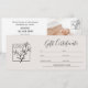 Create a stylish and professional Gift Certificate for your business. This editable template features modern script typography and can be personalized with your company logo and a photo to showcase your products or services. Customize the text with your business name, contact information, any service or product restrictions, and certificate terms and conditions. Space is provided for handwritten details such as recipient's name, gift giver, value, issue date, expiry date, and a unique voucher code. Make your gift card stand out with a creative tagline that reflects your services. This elegant design is ideal for various businesses, including makeup artists, hair and beauty salons, massage therapists, stylists, boutiques, small businesses and many others. Printed colors: pale beige, off-white, black and white, or customize the color to align with your brand.