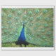 Brillant blauer Pfau hat seine Schwanz Federn verteilt über die gesamte Papieroberfläche.
