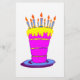 Ein riesiger Geburtstagskuchen mit rosa und gelben Zuckergüssen, die treibende Eis und blauen Kerzen.