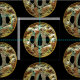 Einzigartiger Ausdruck eines vergoldeten asiatischen Medaillons von Vision Studio. Ein Regenbogen der Herbstfarben prägt das Auge und verleiht der Medaille ein warmes Ambiente vor schwarzem Hintergrund. Holen Sie sich noch heute Ihr Exemplar!