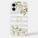 Gilded Blooms | Graue Streifen floral Monogramm iPhone 16 Hülle