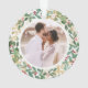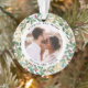 Dieser prächtige, frisch vermählte Sake-Ornament besticht durch einen üppigen, festlichen Kranz aus goldenen Blätter, Weihnachtsgrün und roten Heiligbeeren auf einem modernen, weißen Hintergrund. Ihr persönliches Hochzeitsfest-Foto geht in die Mitte mit den Worten "Verheiratet und fröhlich", und es gibt sogar einen Platz für Ihren Namen. Ein zweites Foto geht auf die Rückseite. Ein perfektes Geschenk für den neu verheirateten Ehemann und die Ehefrau.