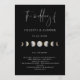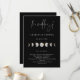 Elegante Aquarelltöne vergoldete Mondphasen, Hochzeitsprogramm. Hintergrund mit schwarzem Hintergrund.