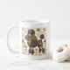 Did you know that the very name of the impeccably stylish Poodle originates from the German word pudelin, meaning "to splash about in puddles"? Beneath the aristocratic, meticulously sculpted curls of this breed beats the surprisingly rugged heart of a brilliant water retriever bred to retrieve ducks from icy marshes. It is exactly this delightful contradiction—an athletic, clownish canine wrapped in an air of sheer, unadulterated elegance—that makes the Poodle so utterly captivating. We have immortalized that majestic essence in this unique coffee mug, seamlessly marrying the sophisticated charm of the breed with the dazzling, ornamental beauty of the early 20th-century Viennese Secession art movement.
