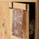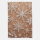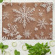 This delicate composition celebrates the intricate beauty of nature through a series of highly detailed snowflakes set against a warm, sandy ochre background. Each snowflake is rendered with fine, lace-like precision in a crisp white, creating a striking contrast that emphasizes their unique hexagonal symmetry. The background features a subtle, speckled texture reminiscent of falling frost or a light dusting of snow, while the overall warm tone lends a sophisticated, vintage holiday aesthetic to the piece. The arrangement is organic yet balanced, capturing a frozen moment of winter elegance.