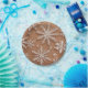 This delicate composition celebrates the intricate beauty of nature through a series of highly detailed snowflakes set against a warm, sandy ochre background. Each snowflake is rendered with fine, lace-like precision in a crisp white, creating a striking contrast that emphasizes their unique hexagonal symmetry. The background features a subtle, speckled texture reminiscent of falling frost or a light dusting of snow, while the overall warm tone lends a sophisticated, vintage holiday aesthetic to the piece. The arrangement is organic yet balanced, capturing a frozen moment of winter elegance.