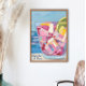 Cette image générée par un logiciel d'IA et graphique est une illustration colorée et artistique d'un cocktail Pink Gin & Tonic. La boisson est dépeinte dans un verre transparent rempli de : Couleurs vives, cubes de glace de style mosaïque, peints de blocs abstraits de rose, rouge, jaune, blanc, bleu et violet. Un vernis de coin citron vert perché sur la jante, peint dans les tons vert et jaune stylisés. L'arrière - plan est doté d'un ciel et d'un océan abstraits et calmes, aux tons bleus doux, accentués par le violet et le rose, évoquant une atmosphère sereine, comme un crépuscule. Dans le coin inférieur gauche, en police marine-bleu cursive, on peut lire : "Gin rose & Tonic".