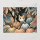 Ein gemütliches Herbstdesign mit einer Ingwer-Katze, die sich in einem Kürbis-Pflaster niederlässt, perfekt für den Herbst.