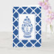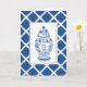 Cette unique conception de la carte de bambou à gingembre monogrammed est composée d'un arrière - plan à motifs de bambou bleu et blanc très chic avec un vase de bambou à cordes bleu et blanc de chinoiserie gingembre. L'intérieur est laissé vide pour vous d'écrire votre message personnel, ou d'acheter 8-10 cartes et de les emballer avec une belle proue pour un cadeau d'hôtesse.