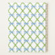 Ce design de planificateur personnalisé est doté d'un arrière - plan à motifs en treillis bleu et vert très chic, avec un vase en pot coordonné bleu et blanc de chinoiserie.