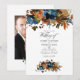 Trendy Aquarell Blüte verschob die Hochzeitsankündigung im Akzent der Ingwer-braunen Orange und indigoblau. Ideal für jede Art von Thema oder Gartenhochzeit. Das Foto auf der Rückseite ist optional. Wenn Sie es lieber entfernen möchten, scrollen Sie unten in "Personalisieren Sie diese Vorlage" und klicken Sie auf "Bearbeiten mit dem Entwurfswerkzeug". Im Entwurfswerkzeug können Sie Text- oder Designelemente bearbeiten, skalieren, löschen oder verschieben, die Sie wünschen.