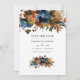 Die trendige Aquarellblütenhochzeit spart das Datum in Akzenten von Ingwer-Braun Orange und Indigoblau.
