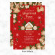 Lebkuchenhaus, das die Party Einladung mit festlichem Rot-Grün-Design mit Lebkuchenstern, anderen Elementen und einem Lebkuchenhaus dekoriert. Ideal für festliche Feiern, leicht anpassen.
