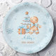 Ein kleiner Mann ist unterwegs! Weihnachtsjunge duschen Papier Teller mit einem bezaubernden Lebkuchenmann, Weihnachtsbaum, Geschenk und Schneeflocken alles in Babyblau und Beige. Personalisieren Sie den gesamten Text einfach. Kate Eden Art