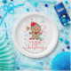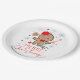 Ein Gingerbread Man Cookie Papier Party Teller mit einem niedlich frohen Weihnachten, Schneeflocken und Bonbons Zuckerrohr Design.