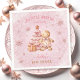 Ein bisschen Schatz ist unterwegs! Weihnachtsmädchen duschen Papierservietten mit einem bezaubernden Lebkuchenmädchen, Weihnachtsbaum, Geschenk und Schneeflocken in Rosa und Beige. Personalisieren Sie den gesamten Text einfach. Kate Eden Art