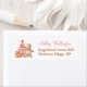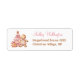 Weihnachtsmädchen Duschadresse Etikett mit einem bezaubernden Lebkuchenmädchen, Weihnachtsbaum, Geschenk und Schneeflocken alles in hellrosa und beige. Kate Eden Art