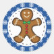 Gingerbrot Man on Blue White Snowflakes Pattern Runder Aufkleber