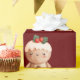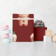 Süßes Lebkuchengebäck mit heiliger Schleife in ihrem Lebkuchenhaar. Roter Hintergrund. Geschehen in Aquarellen. Ideal für jedes Alter für alle Ihre Geschenkverpackung.