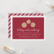 Invités Invitations à échanger les cookies de vacances préférés avec notre invitation à échanger les cookies de vacances Gingersnap festive. Le design comprend un arrière - plan rouge canneberge avec une bordure blanche et trois illustrations de biscuits tout juste sorties du four au sommet. Personnalisez avec vos informations d'échange de cookies de Noël dans un mélange de script moderne et de lettres bloc. Les invitations se retournent vers des bandes diagonales rouges et blanches festives.
