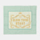 Eine Decke mit einer Touch von Südcharme, mit Goldtext "segne dein Herz" in extravagantem Rahmen und Vintagem, blauen Gingham Hintergrund.