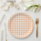 Moderne Sommer Trend Picknickdecke Gingham kariert Tartan Muster. Pastelltöne sind ästhetisch. Tischtücher aus Party in Pastellorange, Pfirsichgingham. Babydusche, Hochzeit, Party-Dekor für Mädchen.