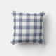 Großes Gingham-Wurfskissen. Gemacht in den USA. Baumwoll- oder Polyester-Akzentkissen mit einem Ginghammuster im Kadett-Blau.