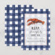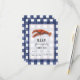 Eine rustikale nautische Hochzeit r.s.v.p. mit einer Illustration eines Hummers über einem verwitterten blau-weißen Gingham Hintergrund.