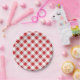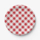 Klassischer roter und weißer Ginghammuster-Pappteller. Groß für rustikales, Scheune, lässiges, im Freien, Geburtstag, Picknick, Western oder irgendein Party.