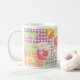 Diese farbenfrohe Tasse zeigt durch Collage Lieblingsgenüsse des Sommers wie Eis, Limonade, Wassermelone, Drachen, Heißluftballon und Picknicktabletts.