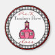 Ein Magnet für Lehrer mit dem Logo des Pink Schoolhouse in einem kreisförmigen schwarzen Gingham Rahmen mit rotem Schnitt. Schwarz und Rot lauten "Vor-K-Lehrer haben Klasse".