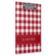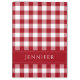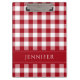 Klassische, rot-weiß-markierte Gingham-MusterZwischenablage mit personalisiertem Namensdruck auf der Vorder- und Rückseite. Matching-Schreibwaren vorhanden.