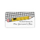 Ein Etikett mit einer Abbildung eines gelben Bleistifts in der Mitte. Brauner Gingham über dem Bleistift. Personalisieren Sie mit Ihrem Text unter Stift. Ideal für ein Buchlabel oder andere Klassenbenutzung.