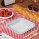 Gingham Simple Bow Dusty Blue Boys Baby Shower Pappteller