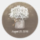 Gipskraut Mason Jar und Rustikaler Burlap Runder Aufkleber