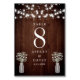 Gipskraut String Lights Elegante Hochzeitsstimmung Tischnummer. Der Atem des Blumenbabys und die rustikalen Saitenleuchten Set vor einem eleganten, romantischen Holzhintergrund. Ideal für eine Land- oder Winterveranstaltung. Personalisieren Sie dieses individuelle Design mit Ihren eigenen Details.