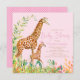 Invitations de douches bébé Giraffe avec adorable maman et petite fille girafe portant une couronne rose mignonne sur un vert coloré et arrière - plan feuille. Ces invitations pour la petite girafe de petite fille sont facilement customisées pour votre événement en ajoutant simplement vos détails. Vous pouvez également enlever la couronne et changer la couleur arrière - plan sur ces adorables invitations girafes de douche bébé.