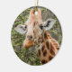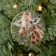 Keramik dekoratives Ornament mit einem Bild einer Giraffe, die den Betrachter über die Schulter schaut, während sie auf grünen Blätter in einem Dornbaum durchstöbert.