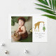 Illustration einer Giraffe, die einen Topfweihbaum mit einem Stern bedeckt. Personalisieren Sie mit Ihrem eigenen Foto, Namen und Jahr.