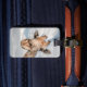 Gepäckanhänger mit naher Sicht auf eine seltsame Giraffe.