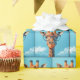 Eine Giraffe trägt eine stilvolle, schwarz geprägte Brille auf einem weichen, blauen Hintergrund und verleiht ihr ein ausdrucksvolles und skurriles Aussehen